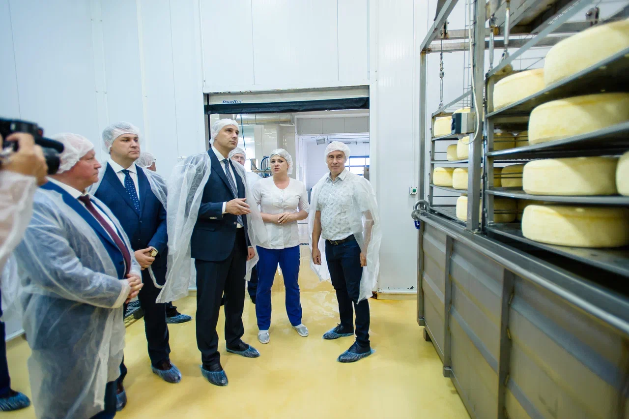 Вместе с главой Бузулука Владимиром Песковым и одним из учредителей завода Игорем Кривовым Денис Паслер осмотрел цеха приемки и розлива молока.