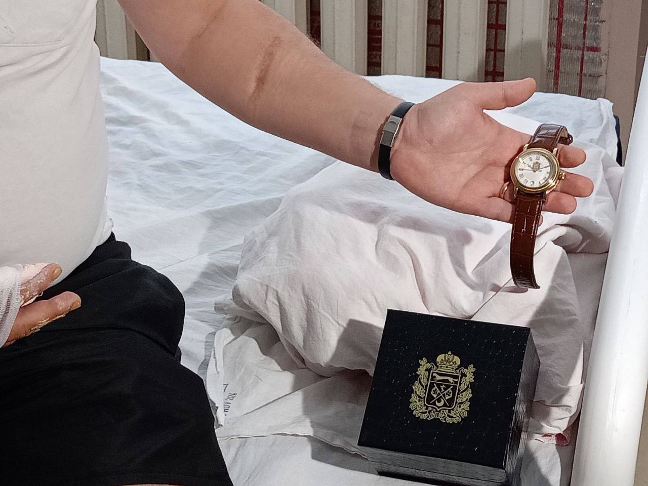 Накануне губернатор посетил областной клинический центр хирургии и травматологии, где один из пациентов-военных подарил Денису Паслеру часы.