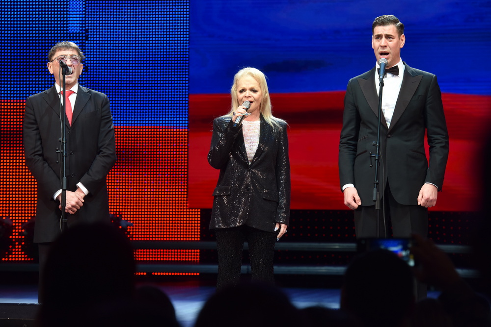 11 мая в Донецке на концерте в честь Дня ДНР выступили известные российские артисты Григорий Лепс, Дмитрий Дюжев и Лариса Долина. Праздничный концерт открылся исполнением Гимна России.