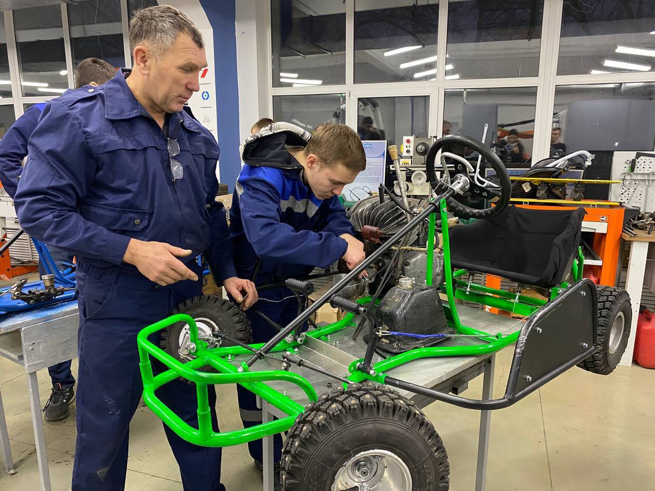 В рамках проектной деятельности на высокотехнологичном оборудовании студентами в настоящее время реализуется поэтапная технология создания механического картинга на площадках, созданных в рамках федерального проекта «Профессионалитет».