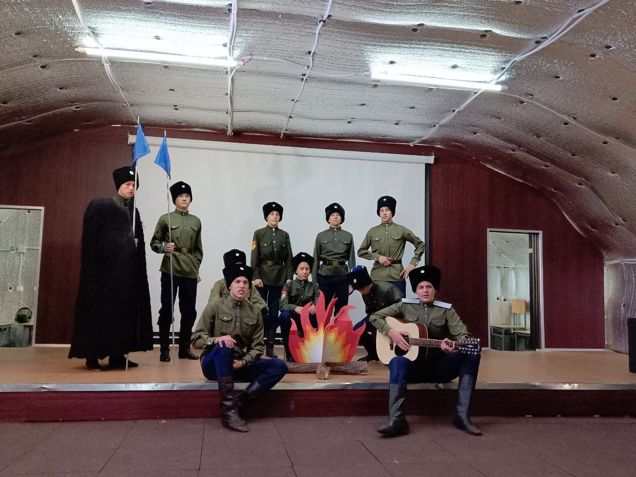 В творческом конкурсе «Визитная карточка», школьники из Караванного казачьего кадетского корпуса показали песню «У походного костра». Их поддержали земляки — казачата и их наставники. Ребята показали отличную выправку в строевой подготовке, силу и ловкость в военно-прикладных видах спорта и одержали заслуженную победу.
