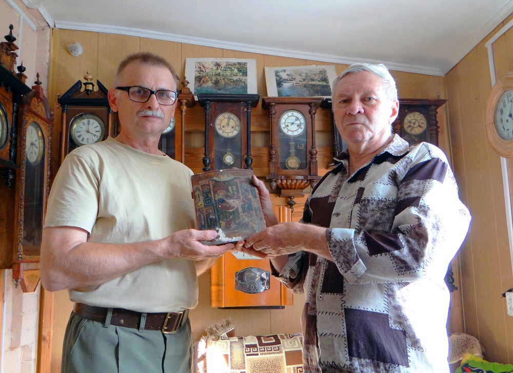 — Для благого дела хорошим людям передаю в дар эту икону, которая мне досталась от родственников. А также старинные часы, из тех, что украшали дома казаков больше ста лет тому назад, — сказал Александр Николаевич, вручая дары.