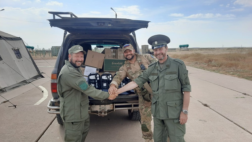 На проходящем под Оренбургом сборе добровольцев, готовящихся пополнить батальон «Ермак», состоялась встреча казаков из Екатеринбурга. Они доставили груз с современным оборудованием для выполнения служебно-боевых задач в условиях специальной военной операции на Украине.