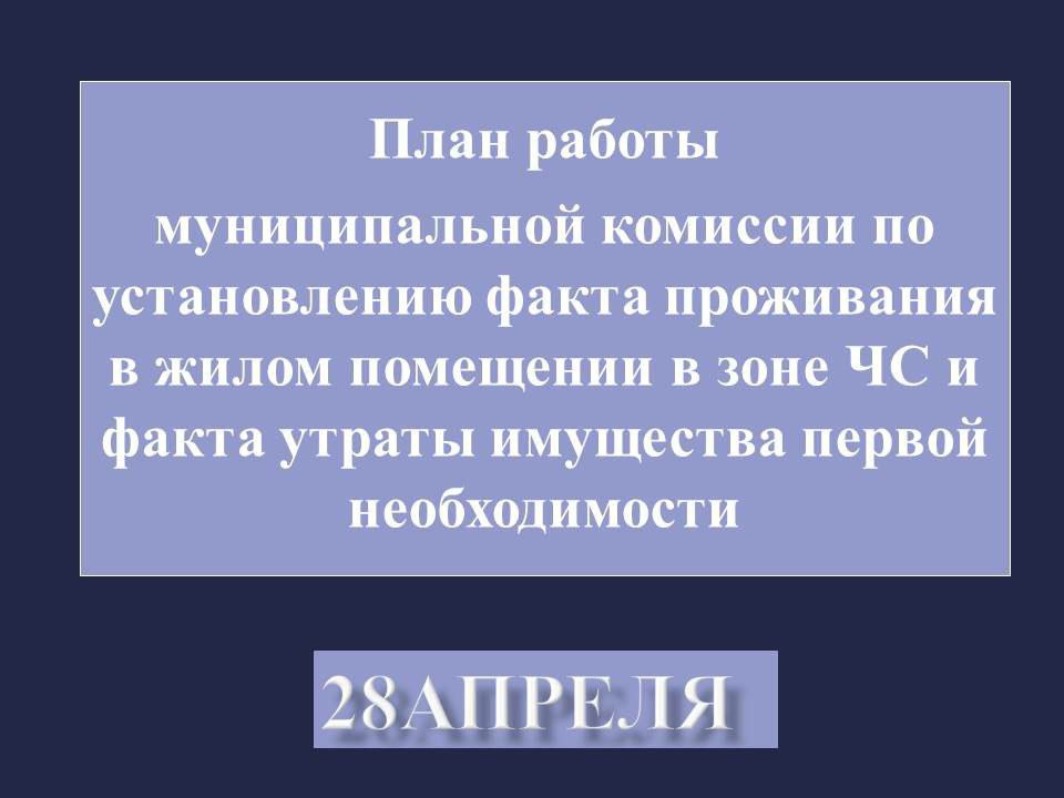 Опубликован план работы комиссий по установлению факта проживания в жилом помещении в зоне ЧС и факта утраты имущества первой необходимости на 28 апреля в Оренбурге.