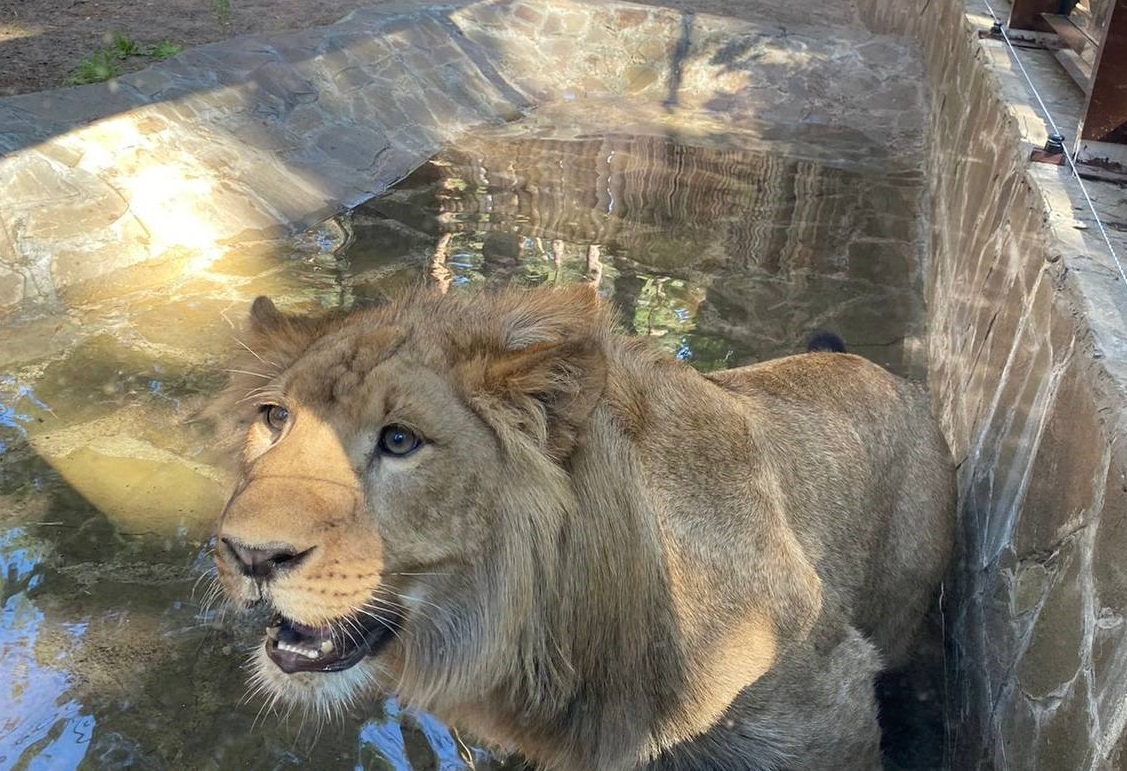 Молодой лев весит почти 100 килограммов. Для Цезаря специально построили вольер площадью 350 квадратных метров. Здесь есть большой пандус-лежак, игрушки и водоём. Сотрудники зоопарка планируют привезти для льва самку.
