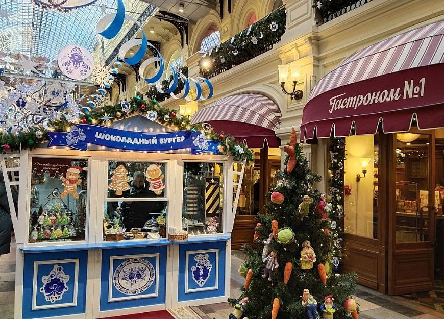 В «Шоколадной артели» представлены всевозможные сладости в новогодней тематике. Кроме того, здесь можно приобрести съедобные бусы и необычные шоколадные изделия в виде котлет и шаурмы.