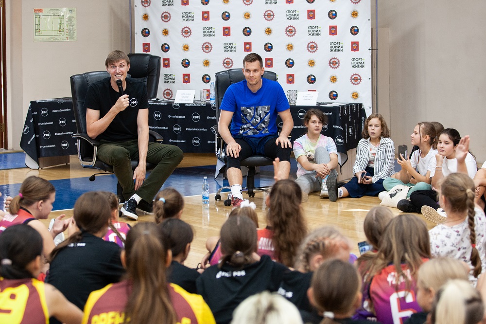 С юными баскетболистами Оренбуржья тренировались президент Российской Федерации Баскетбола, Заслуженный мастер спорта Андрей Кириленко и серебряный призер Олимпийских игр в Токио по баскетболу 3х3 Александр Зуев.