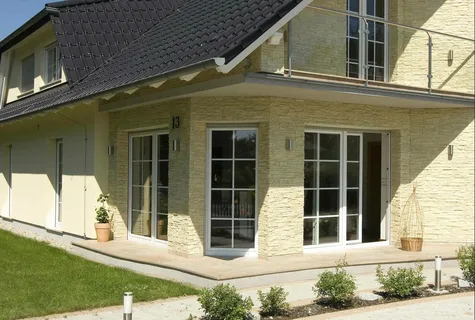- Эстетика. Кладка придает строению привлекательный и элегантный внешний вид. В продаже имеется кирпич разного цвета, размера и формы. К тому же материал допускает декоративную обработку, поэтому можно применять интересные дизайнерские решения. Кирпич хорошо сочетается с дорожными покрытиями такими, как брусчатка, камень, тротуарная плитка от производителя, что позволяет эффектно сочетать фасад с материалом для дорожек.