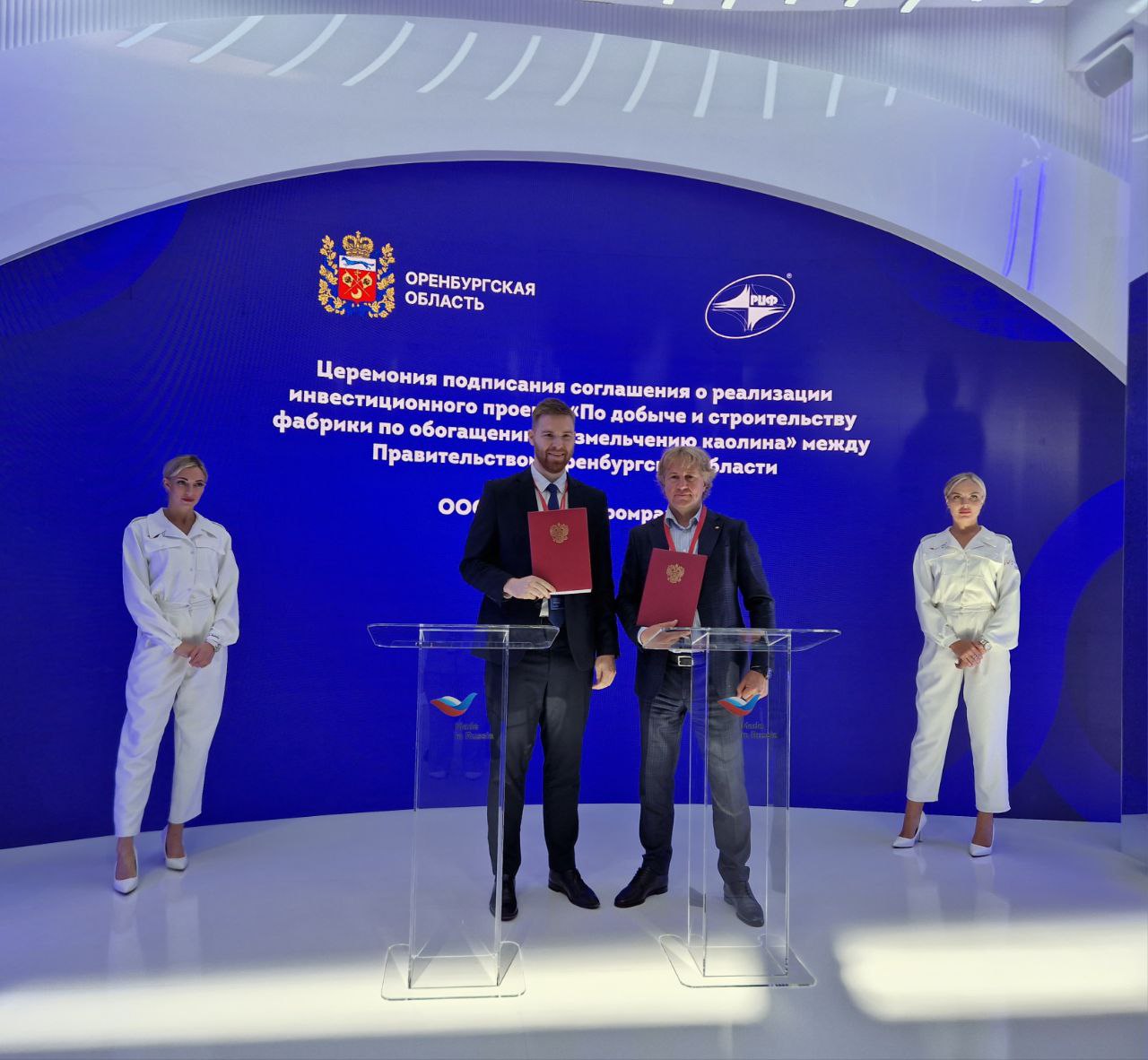 На Петербургском международном экономическом форуме вице-губернатор по экономической и инвестиционной политике, министр экономического развития, инвестиций, туризма и внешних связей Оренбургской области Игнат Петухов подписал соглашение с директором ООО «РИФ-Микромрамор» Алексеем Прохоровым.