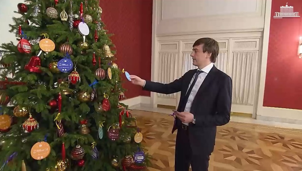 Накануне к акции присоединилось высшее руководство страны. Министр просвещения России Сергей Кравцов снял с ёлки пожелание 13-летнего Даниила из Оренбурга. Мальчик загадал аэрохоккей.