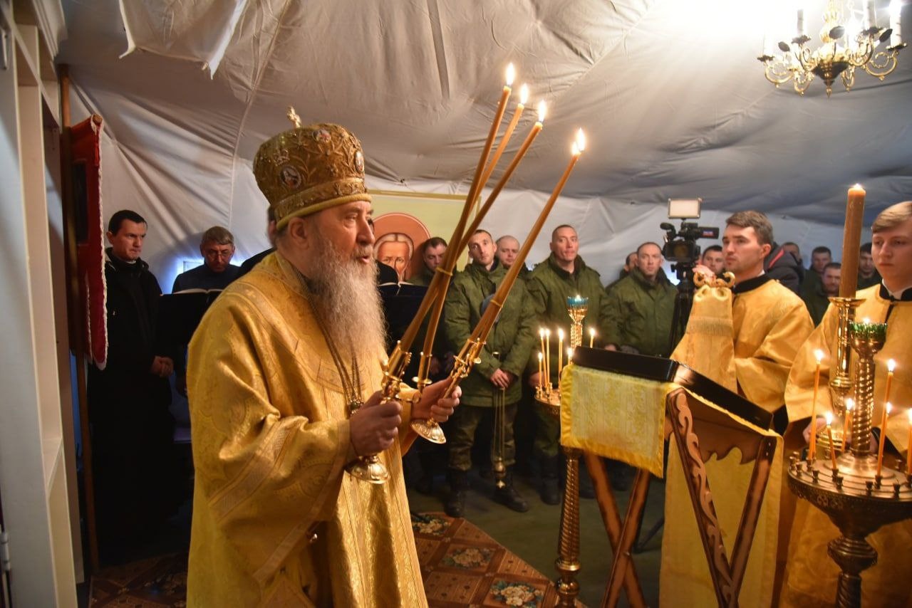 30 октября митрополит Оренбургский и Саракташский Вениамин совершил божественную литургию в полевом храме Великомученика Георгия Победоносца учебного центра Минобороны РФ в Нижней Павловке. Об этом со ссылкой на епархию сообщает портал РИА56.