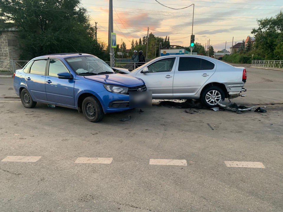 40-летний водитель автомобиля «Лада Гранта» двигался на красный сигнал светофора и допустил столкновение с автомобилем «Шкода Октавиа» под управлением 27-летней женщины-водителя.