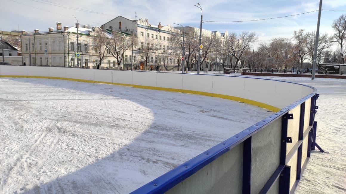 Сегодня на площади началась установка ледового корта с пунктом проката коньков.