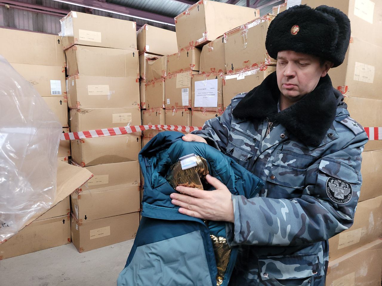На пограничном пункте пропуска Маштаково таможенники задержали фуру из Казахстана, в которой перевозились немаркированные куртки известного американского бренда.