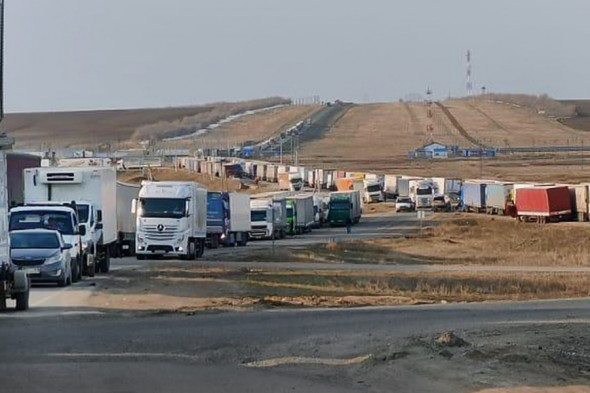 В Западно-Казахстанской области возле пропускного пункта Сырым скопились более 350 грузовых автомобилей. Более 400 большегрузов, едущих из России в Казахстан, стоят в очереди около пропускного пункта Маштаково.