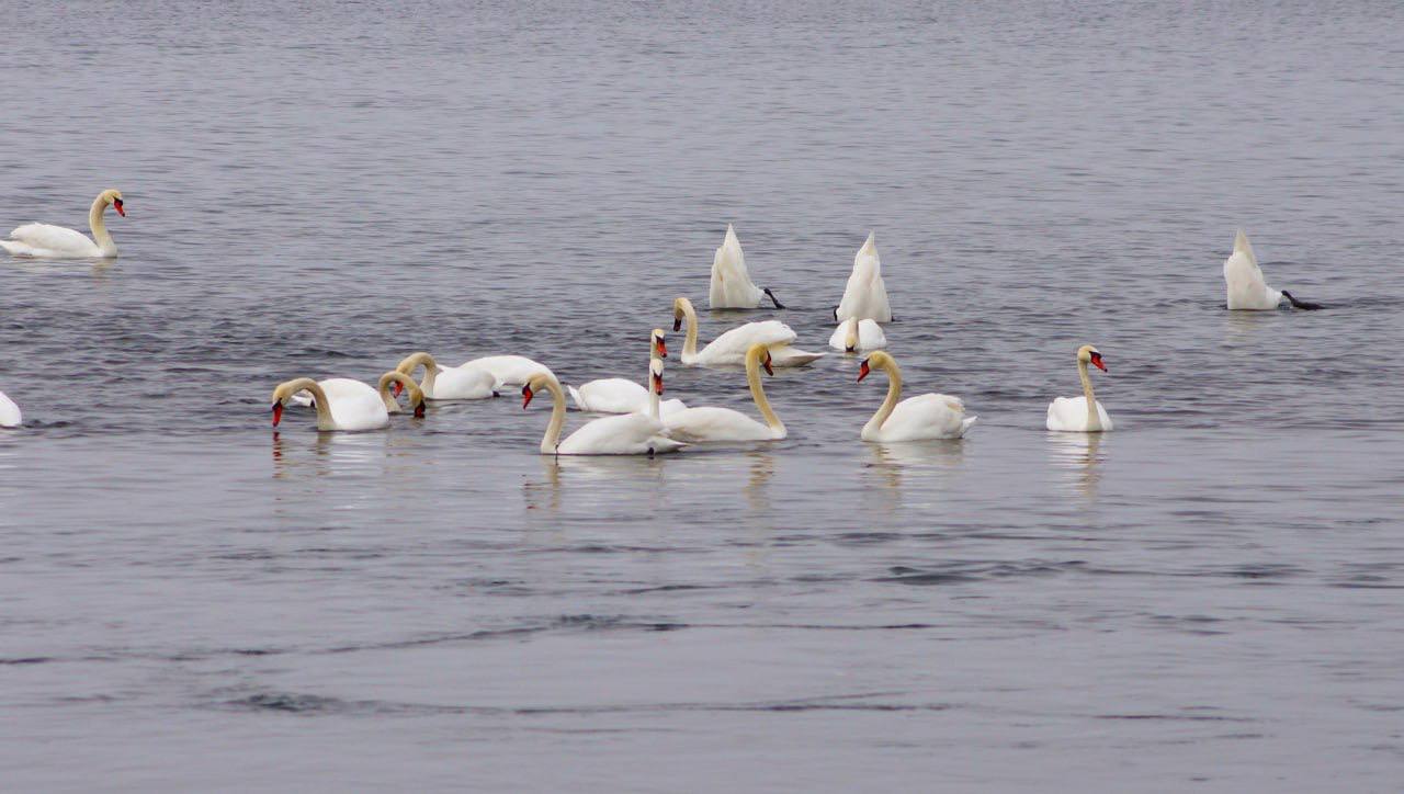 Стаю лебедей заметили на Ириклинском водохранилище в Оренбургской области.