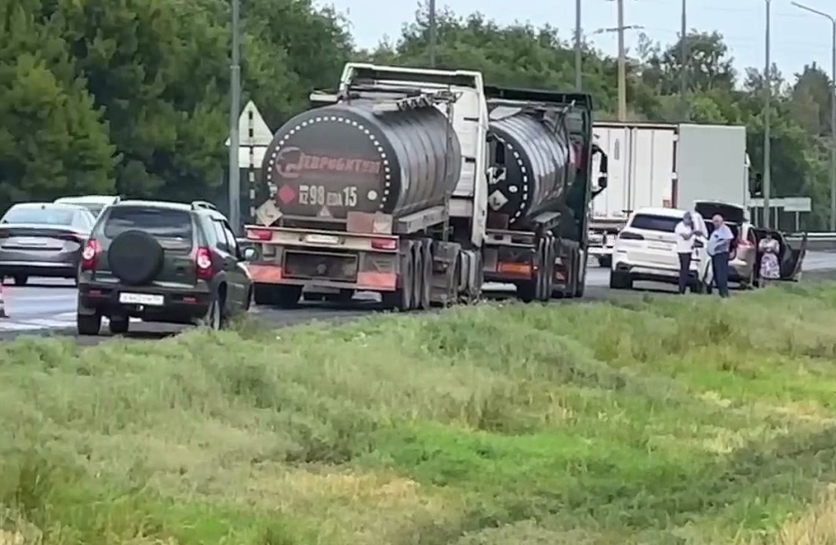 На Нежинском шоссе в районе посёлка Пригородный Оренбургского района прорвало запорный кран у грузового автомобиля Volvo, перевозившего жидкий битум.