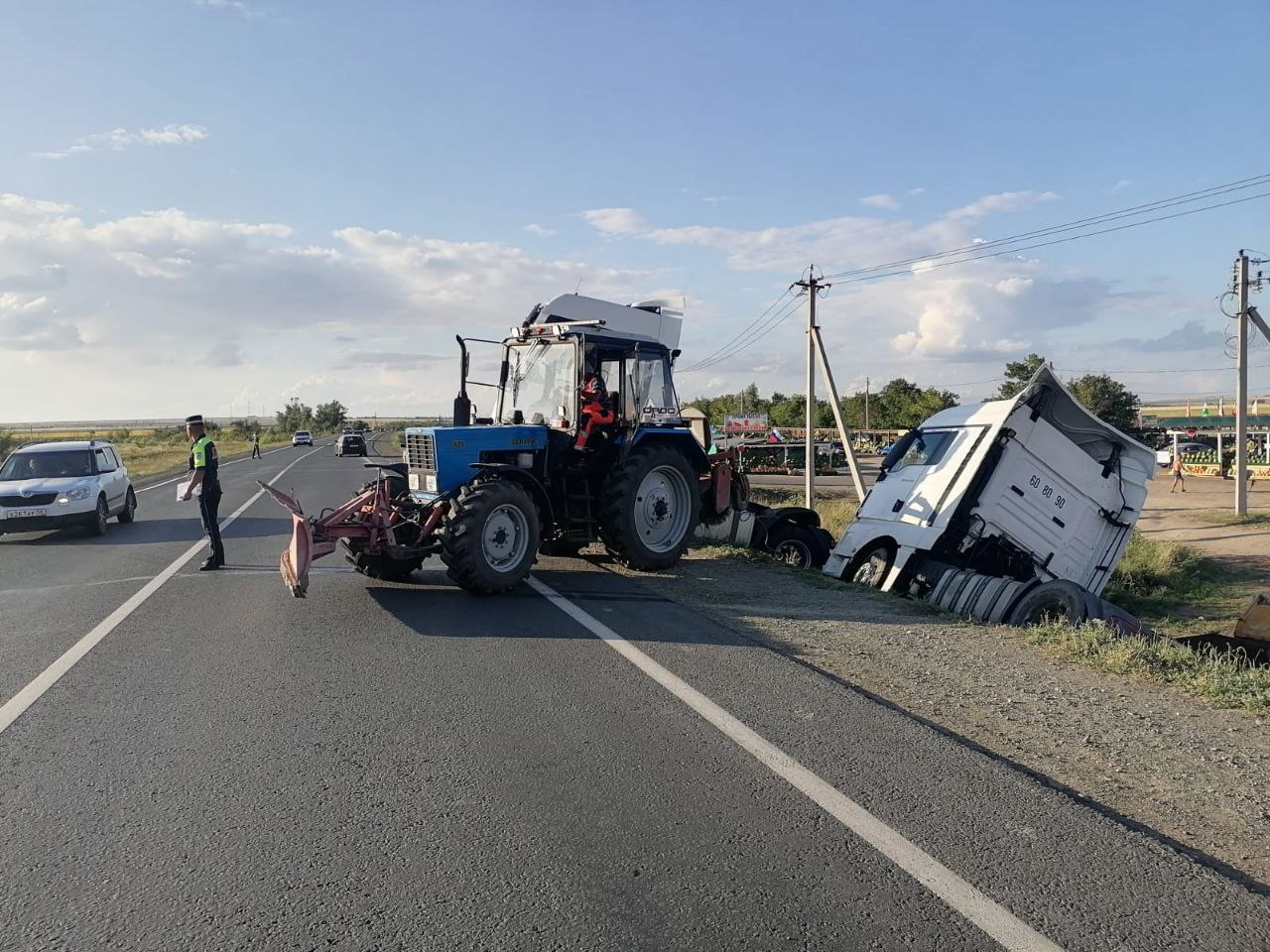 Полицейские Оренбуржья оказали помощь водителю съехавшего в кювет грузового автомобиля.