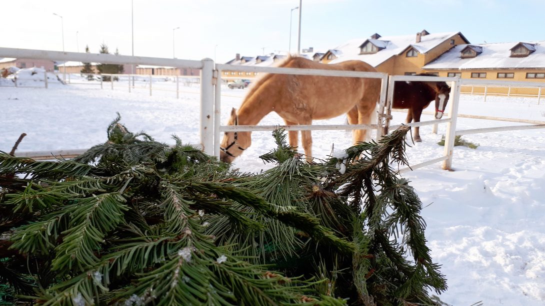 Хвоей с удовольствием лакомятся лошади. В прошлом январе работники оренбургского ипподрома три раза выезжали на грузовике на строительный рынок, торговцы ёлками отдали им свой товар за ненадобностью.