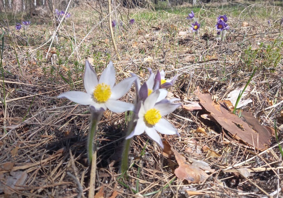 В Бузулукском бору распустились прострелы — удивительные пушистые цветы, похожие на маленькие тюльпаны, желтоватые или нежно-фиолетовые.