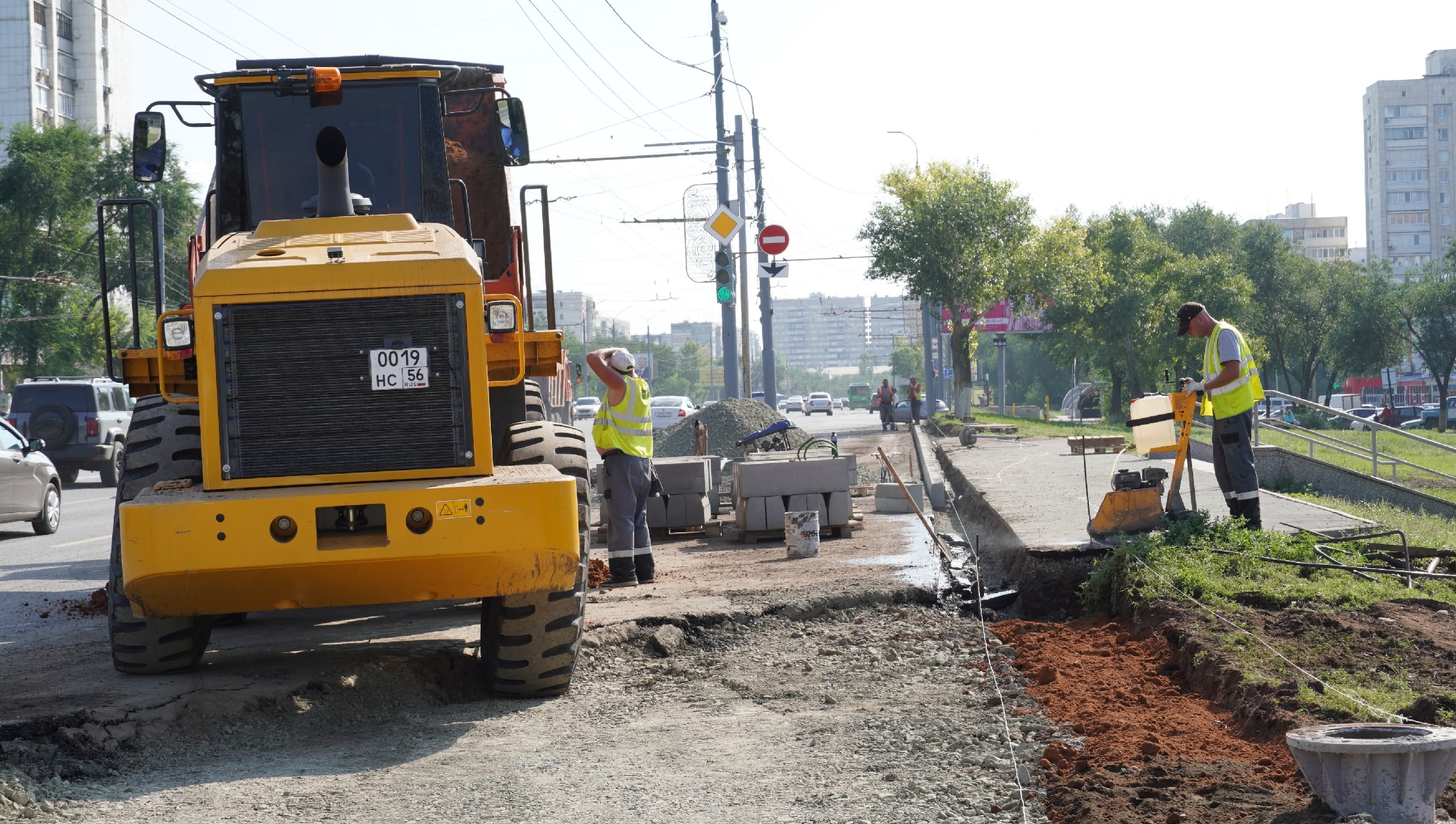 Накануне подрядная организация ООО «Орьтехцентр» приступила к устройству основания под расширение проезжей части в районе СКК «Оренбуржье». На участке выставлены дорожные знаки и конусы, движение автомобилей осуществляется по двум свободным полосам.