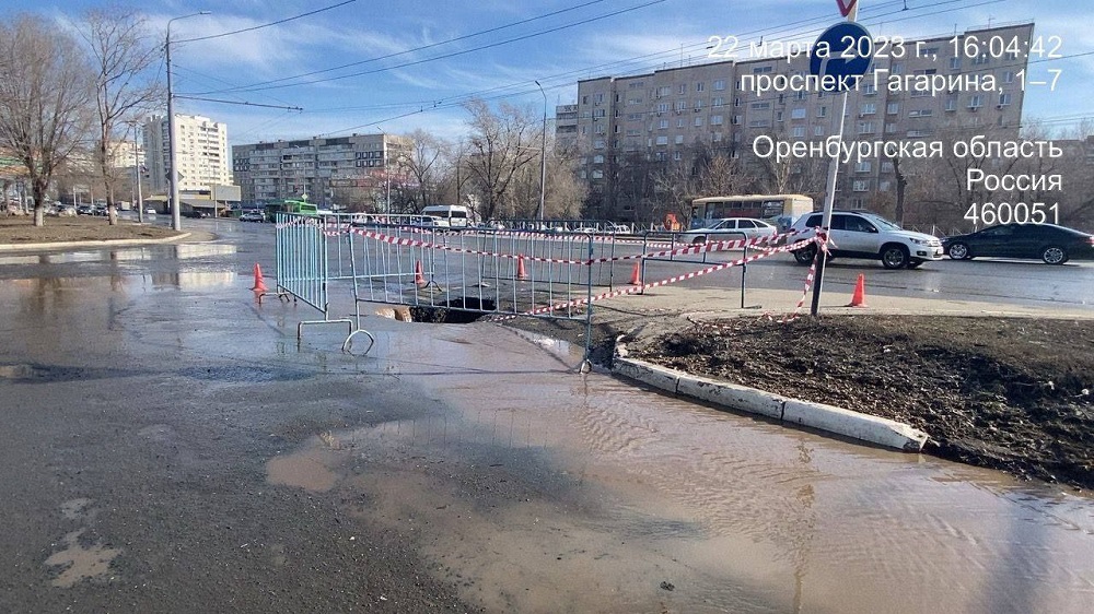 На проезжей части проспекта Гагарина в Оренбурге провалилось дорожное покрытие.