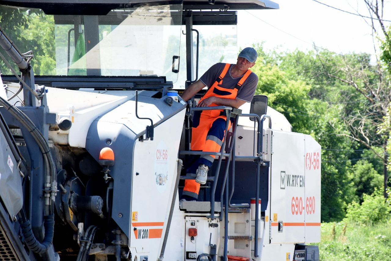 Специалисты ремонтируют дорогу от развязки на Загородном шоссе до улицы Цветочной.