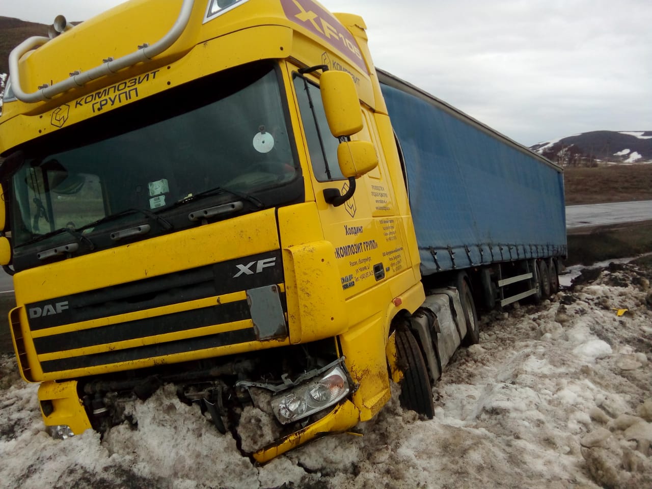 61-летний водитель большегруза DAF с полуприцепом, двигаясь со стороны Орска в сторону Оренбурга, допустил столкновение с обгонявшим его автомобилем LADA Largus, которым управлял 38-летний житель города Орска. После столкновения оба автомобиля съехали в кювет.
