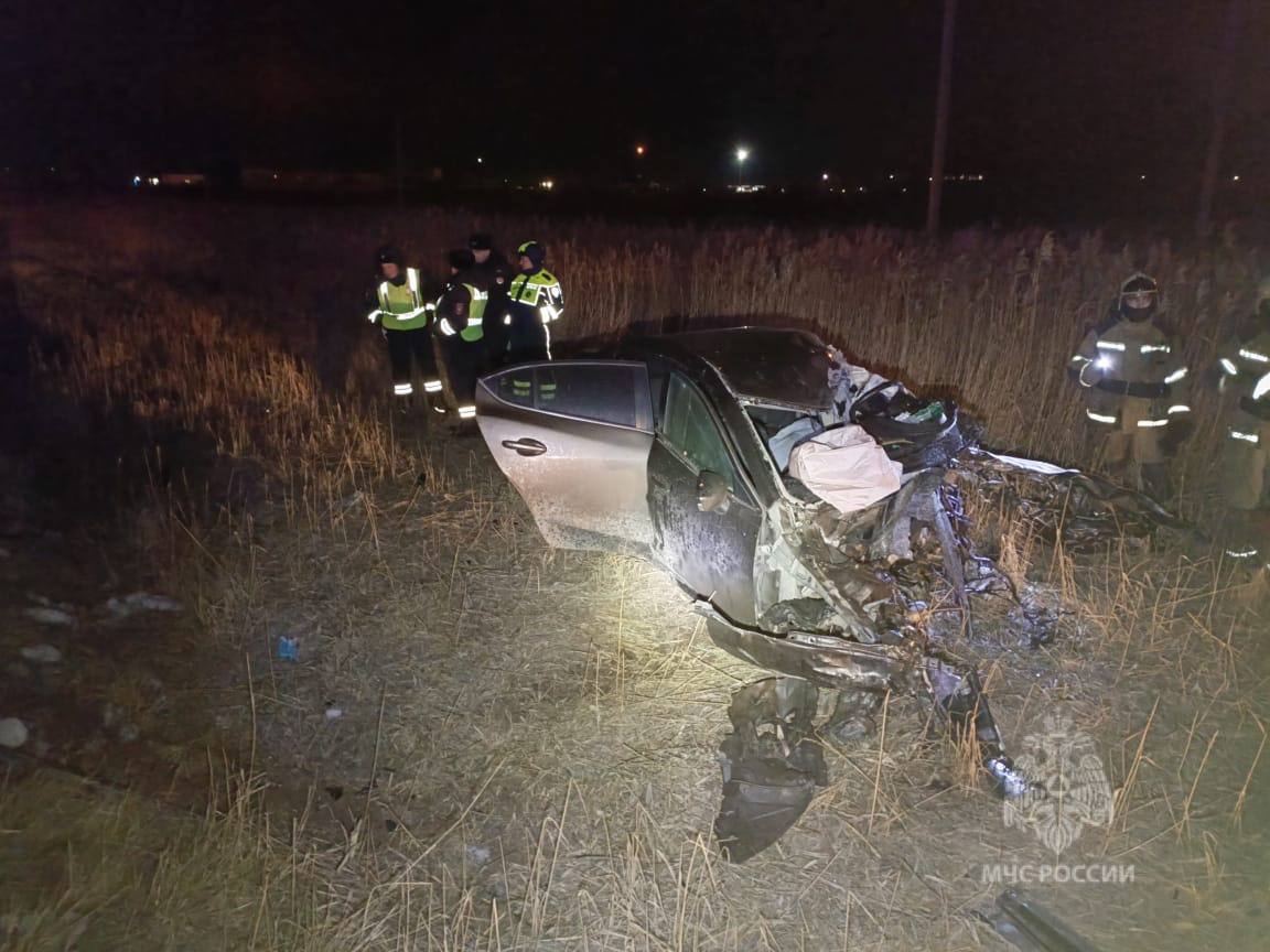 Авария произошла ночью на 24-м километре трассы «Оренбург-Самара». Водитель автомобиля Mazda при обгоне выехал на встречку и врезался в грузовик Volvo с полуприцепом.