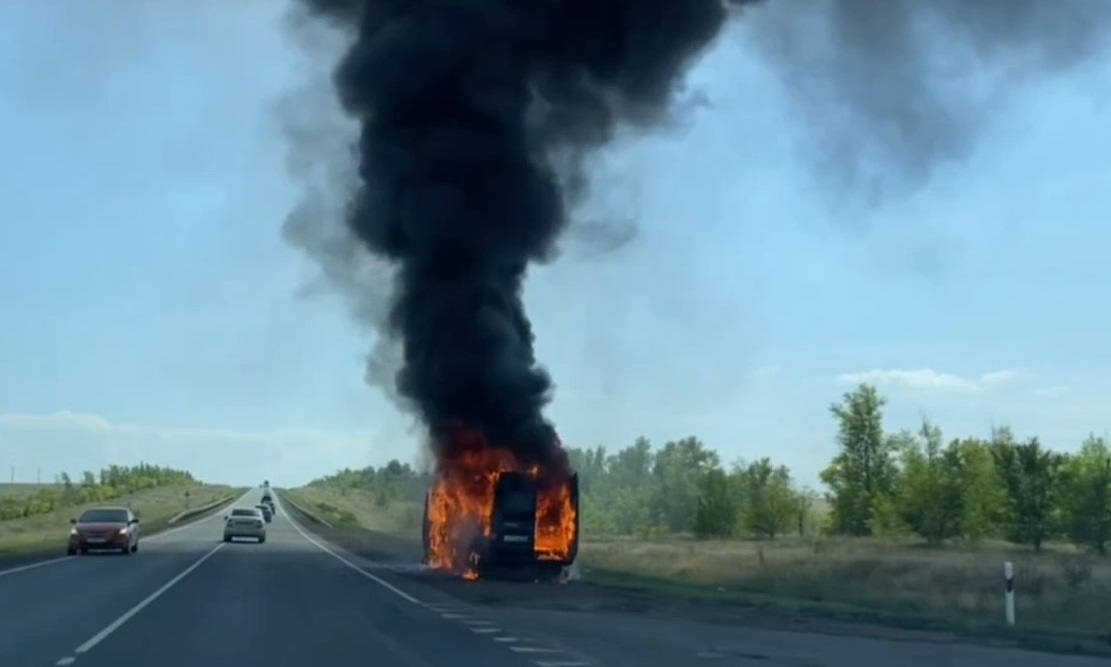 9 июля на трассе «Оренбург — Уфа» возле села Янгиз Сакмарского района загорелся микроавтобус Ford Transit.