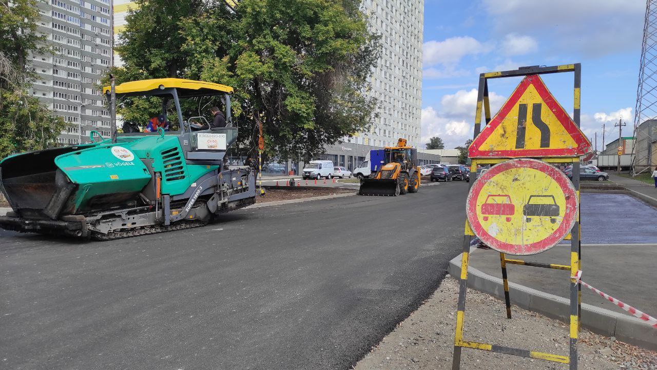 Ранее подрядчик провёл фрезерование изношенного асфальта, уложил выравнивающий и верхний слои покрытия на проезжей части, а также отремонтировал тротуары.