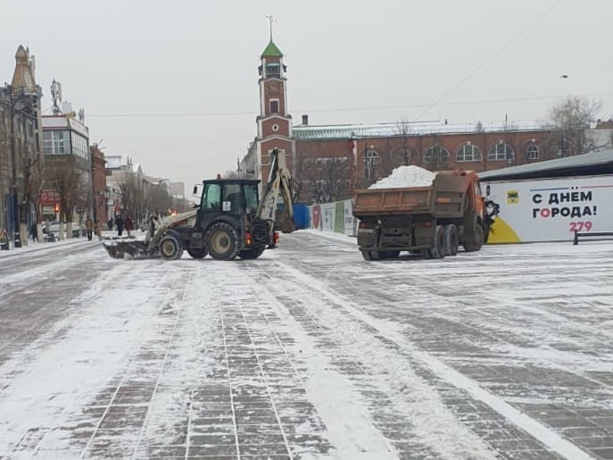 На улицах Брестской, Джангильдина, Просторной, Юных Ленинцев, Пролетарской, Невельской, Ткачёва, Ногина, Культурной, Вокзальной и в центре города сотрудники коммунальных предприятий подметают тротуары и обрабатывают их реагентами.