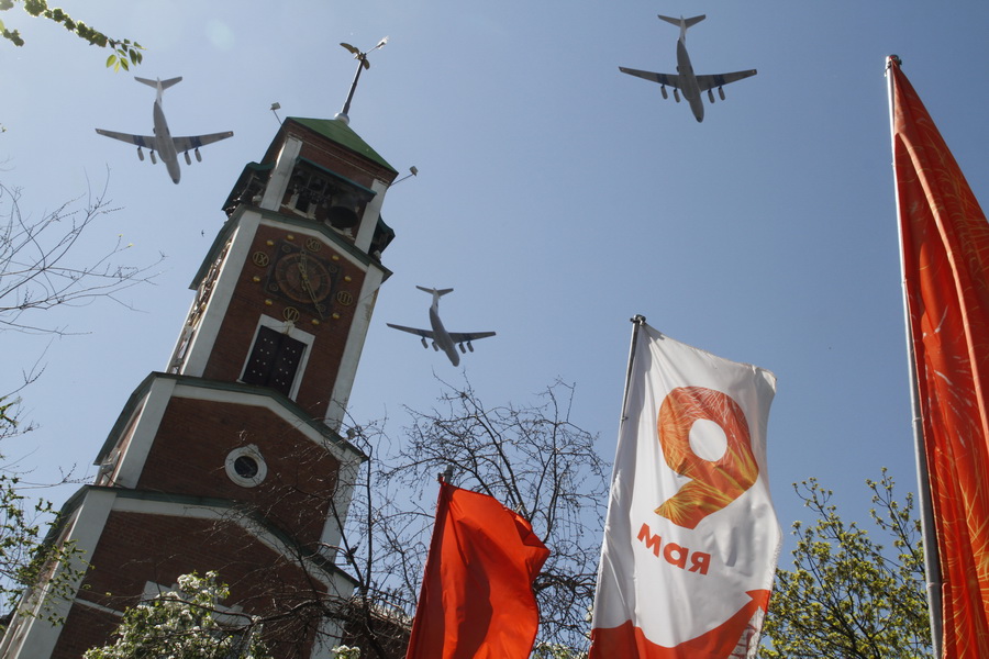 Сегодня в 11.00 над территорией города парадным расчетом пролетела транспортная авиация.