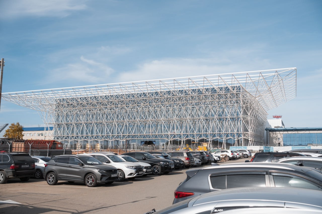В здании будущего терминала завершены монолитные работы, остекление фасадов и устройство кровли. Сейчас ведётся монтаж пространственной конструкции декоративного фасада, укладка керамогранита, отделочные и малярные работы.