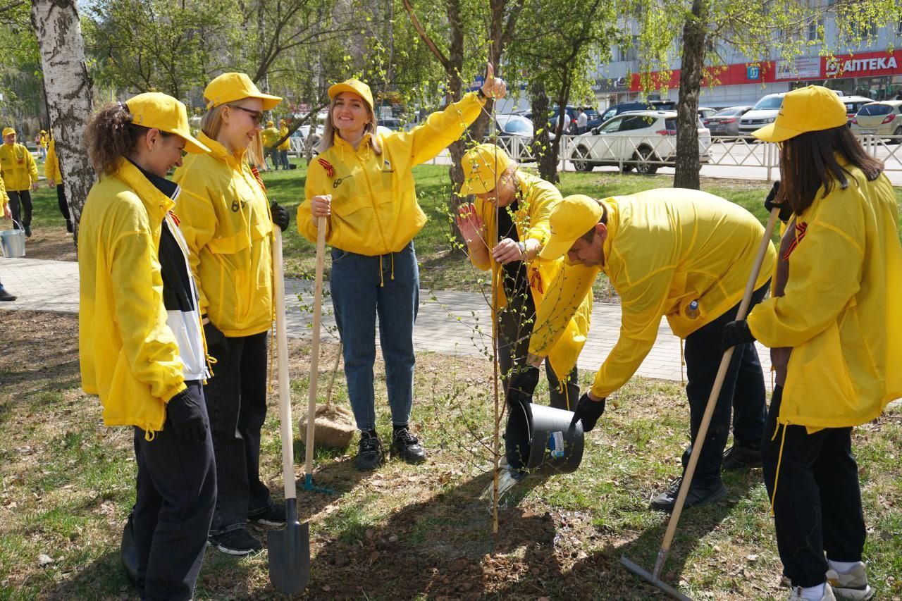 На аллее «Дружба» в Бузулуке сотрудники компании «Оренбургнефть» совместно с учениками Роснефть-классов в честь Дня Победы высадили 100 берез.