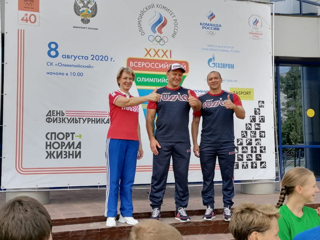 День физкультурника открыла встреча с воспитанниками Ледового дворца, затем на базе спортивного комплекса «Олимпийский» состоялась «Зарядка с чемпионом». Упражнения совместно с юными спортсменами выполняли двукратная чемпионка мира, бронзовый призёр Олимпийских игр по биатлону Елена Кальянова.