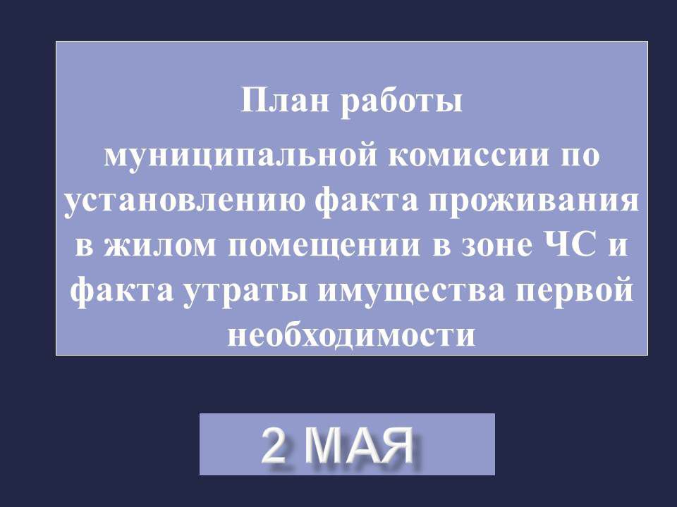 Комиссии по установлению факта проживания в жилом помещении в зоне ЧС и факта утраты имущества первой необходимости работают 2 мая в Оренбурге.