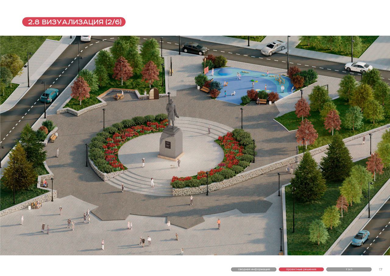Для проведения городских мероприятий предусмотрят мобильную сцену. Чтобы сделать пространство доступным для людей с ограниченными возможностями здоровья, проект включает пандусы и тактильную плитку возле памятника.