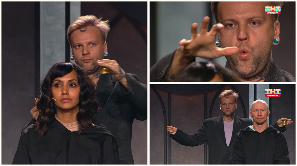 Когда плащи были сняты, оказалось, что на «Реванш» снова пришел Юлий Котов. Напомним, он был участником 19 сезона «Битвы экстрасенсов» и уже пробовал свои силы в одном из выпусков «Реванша», но уступил по баллам Соне Егоровой. Орчанин попросил дать ему второй шанс и вместе с ведьмами проходил второе испытание.