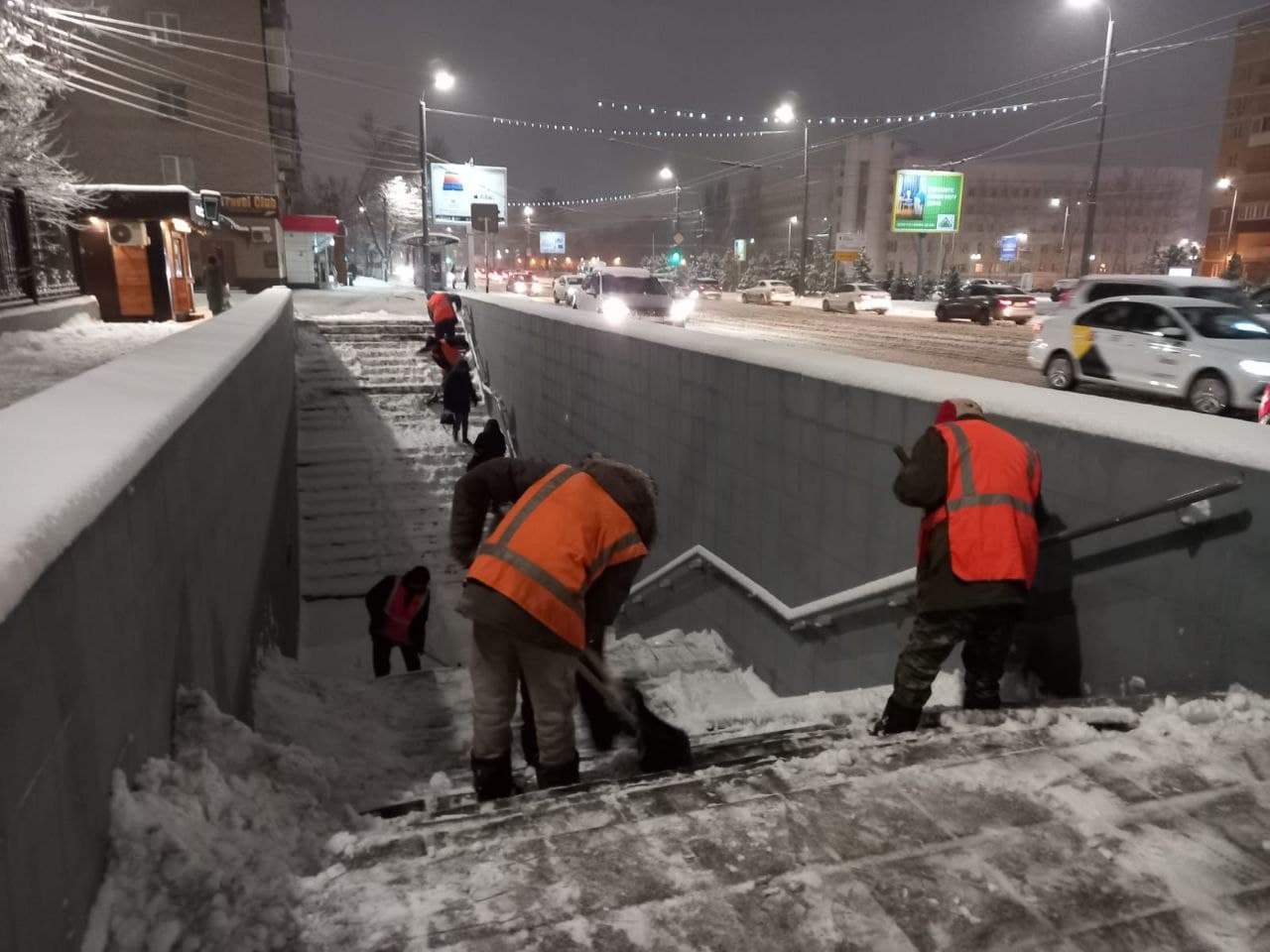 На магистральных улицах областного центра работала утренняя смена из более чем 60 единиц коммунальной техники, более 70 человек вручную расчищали подходы к пешеходным переходам, остановочным павильонам, подземные переходы и пешеходные зоны. С 09.00 к расчистке магистралей приступила дневная смена.