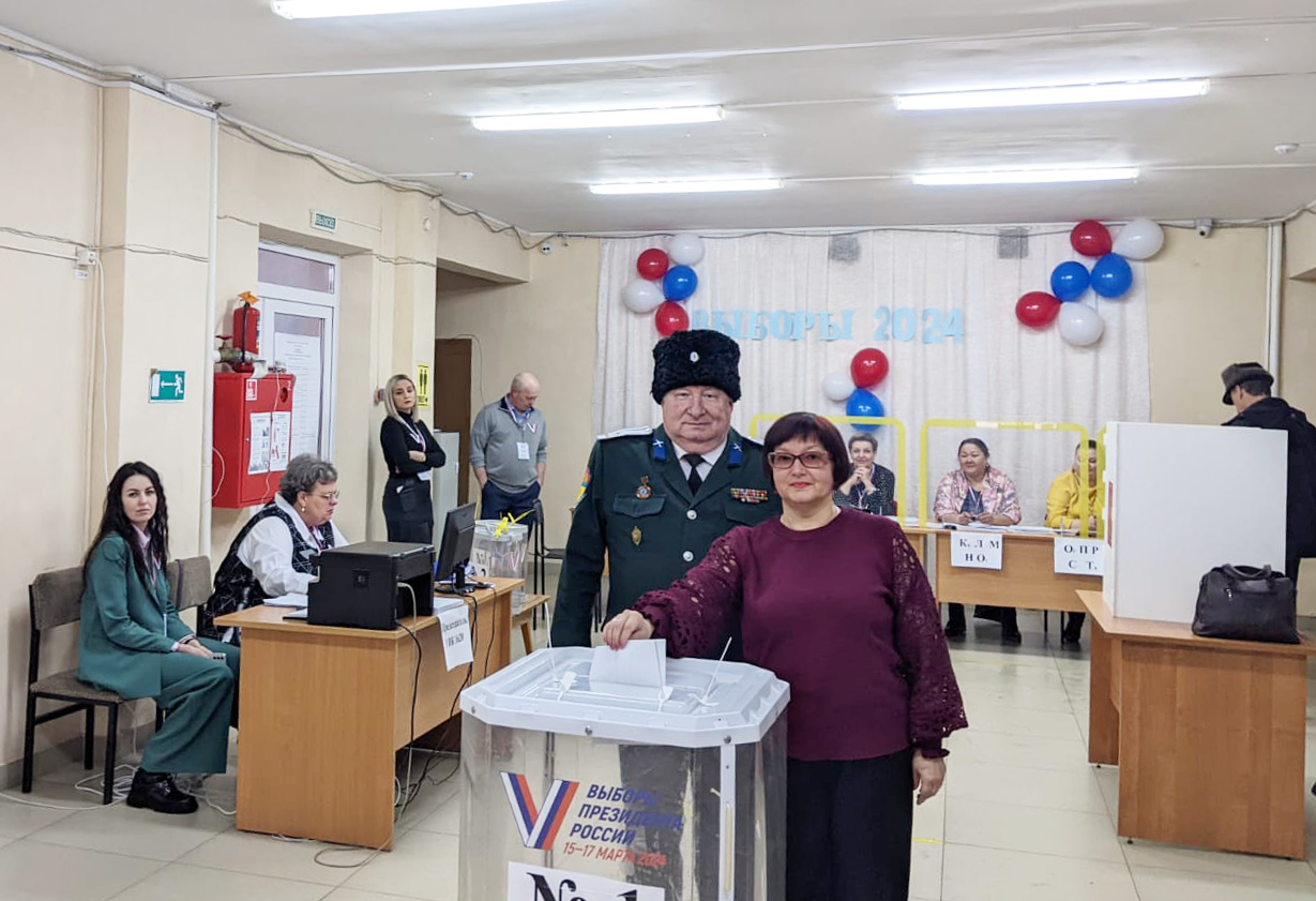 — Сегодня для нашей семьи важный и ответственный день. С утра вместе с супругой Еленой Николаевной посетили избирательный участок и проголосовали на выборах президента России. Сделали мы это с хорошим настроением и твердым убеждением в правильности сделанного выбора. Мы выбираем не просто главу государства, мы определяем, как будет развиваться наша Россия дальше, — поделился атаман ХКО «Вольное» Владимир Этманов.