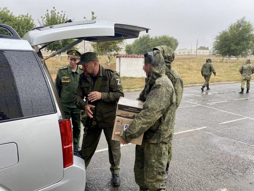 12 коробок с продуктами питания и предметами первой необходимости были доставлены на автомобиле из Гая на военный полигон в одном из районов Оренбуржья, где бойцы проходят подготовку перед отправкой на Украину.