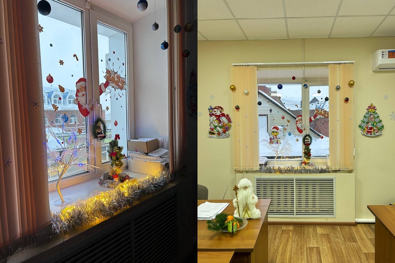 — В конкурсе мы принимали участие впервые, — говорит Земфира Овчинникова, секретарь судебного заседания. — У нас три кабинета и все нарядили по-разному. В одном поставили ёлочку с гирляндами, в другом – композиция из воздушных шаров, в третьем – венок из мишуры и игрушек. И везде развесили весёлые поделки на окна.