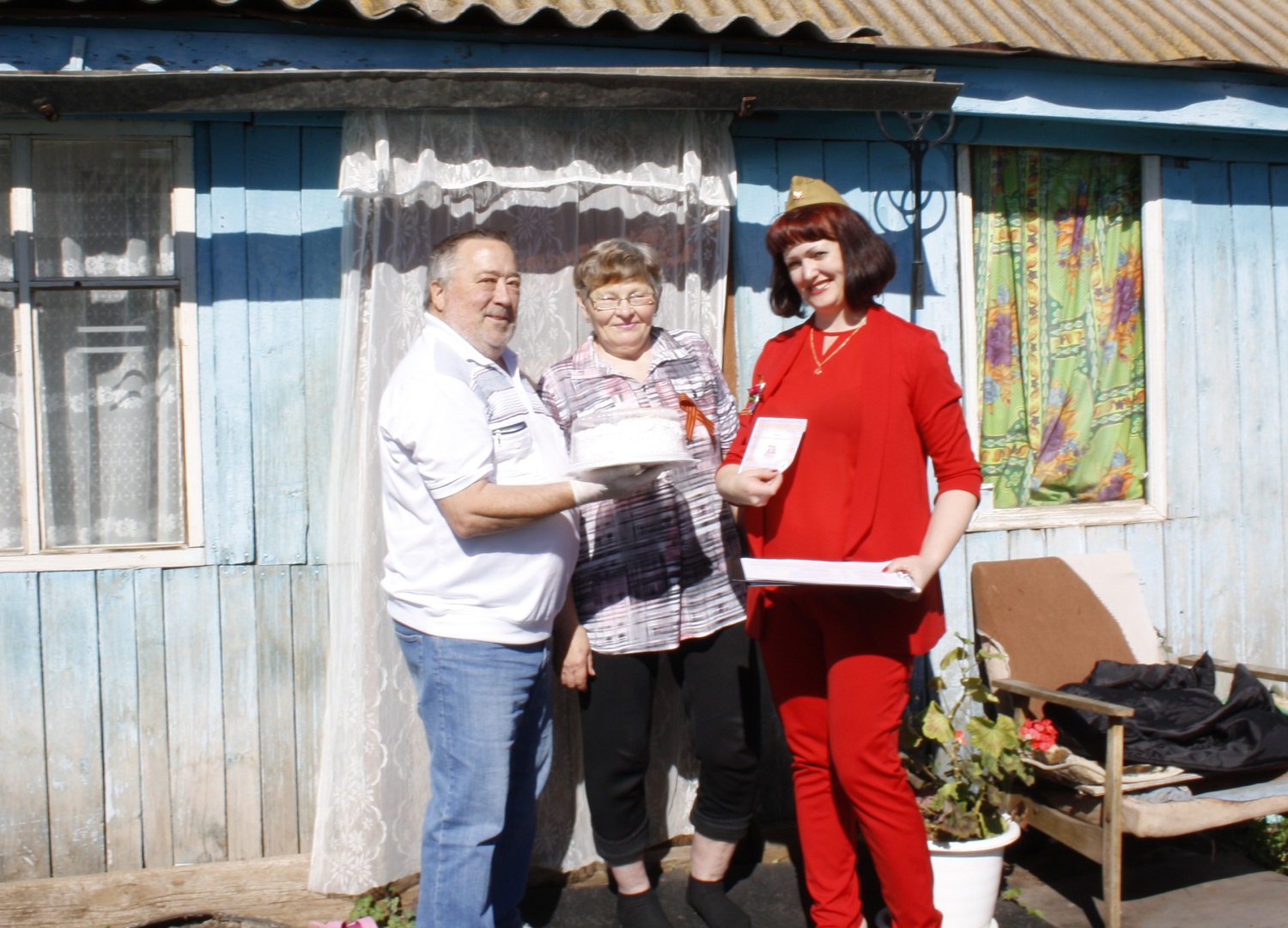 — 9 Мая с утра председатель Оренбургской областной общественной организации немцев Яков Фаст и директор Дома культуры Яков Пеннер возложили цветы к памятнику трудармейцам в селе Кичкасс. Затем они проехали к каждому ветерану и вручили юбилейный диск с записью фильма и торт с победной символикой, — рассказала Ольга Абельцева, координатор общественной организации оренбургских немцев «Видергебурт».