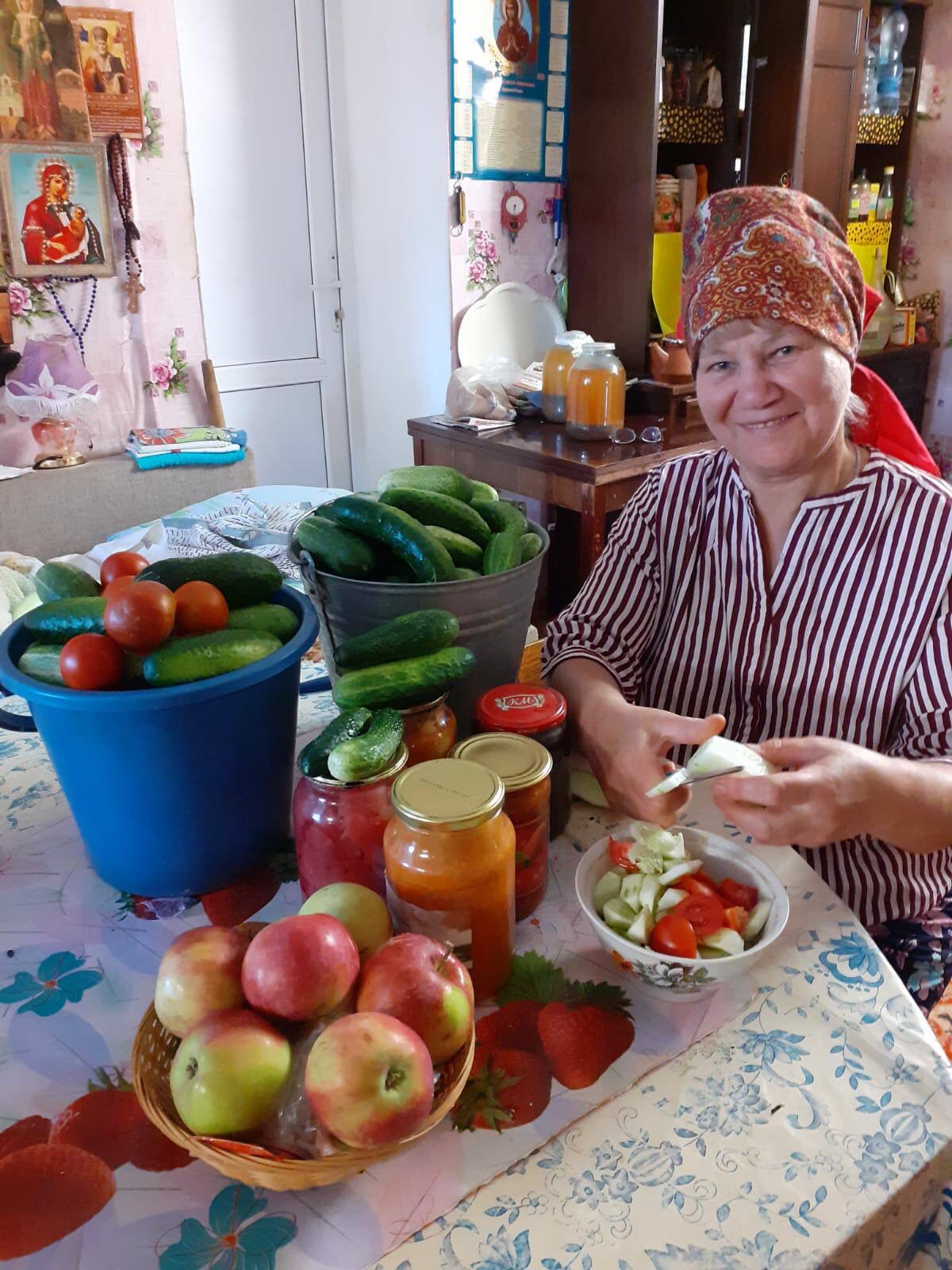 — Слава Богу, всё уродилось — и огурчики, и помидоры, накормил нас огород на всю зиму и даже весну, — радуется пожилая женщина. — Вот только-только закончили банки крутить. Очень выручила меня наша соцработник Светлана Владимировна. Мы-то уж не такие расторопные, устаём быстро. Она и так в быту мне помощница хорошая, а сейчас вот с банками подсобила. И у плиты помогла, и закрыла потом всё наготовленное.