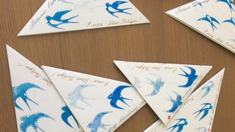 Студенты подготовили поздравительные открытки ручной работы и письма в форме военных треугольников со словами благодарности и признания ветеранам.