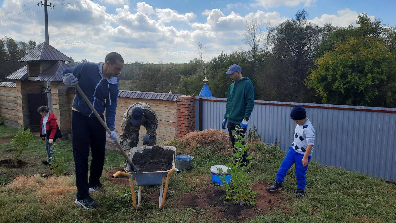 Участники мероприятия, вооружившись лопатами, высадили 60 саженцев тополя, сосны, березы и рябины, а также 30 ирисов. Также они привели в порядок огород монастыря и подготовили его к зиме.