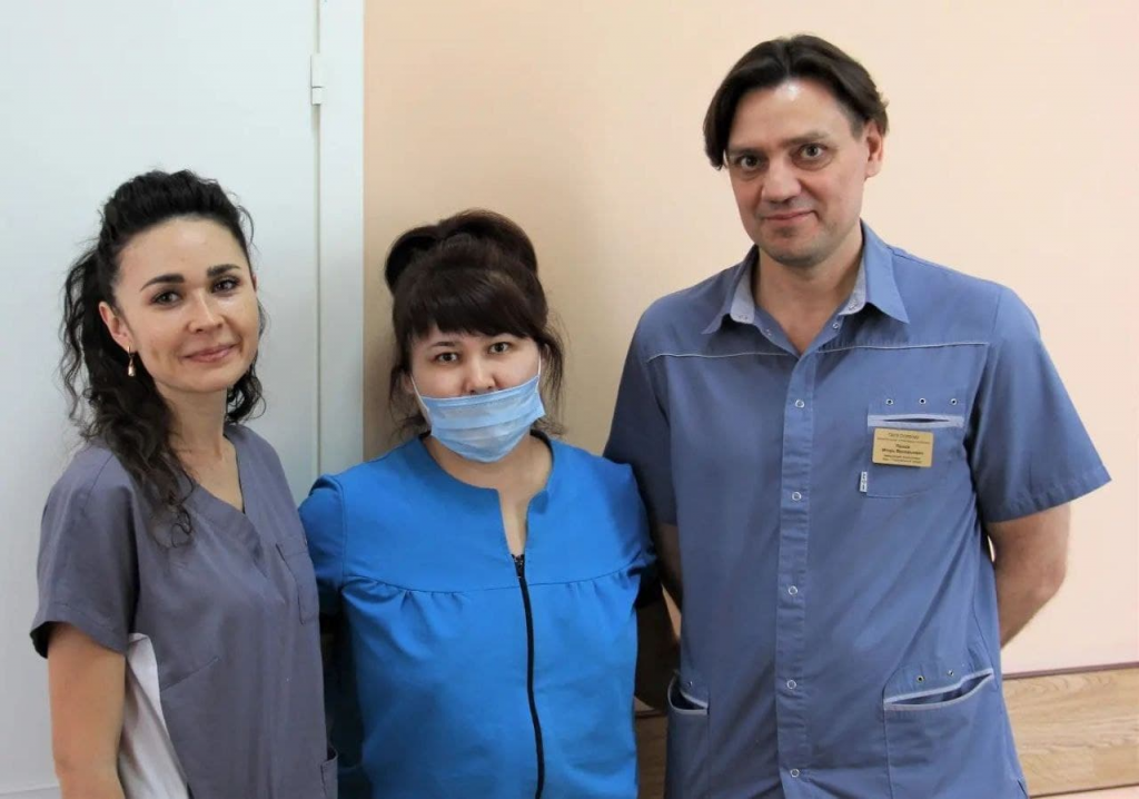 Через нескольких дней, после получения результатов гистологического исследования, пациентка Анара (на фото в центре) была выписана из больницы. Перед выпиской она поблагодарила врачей за их работу:
