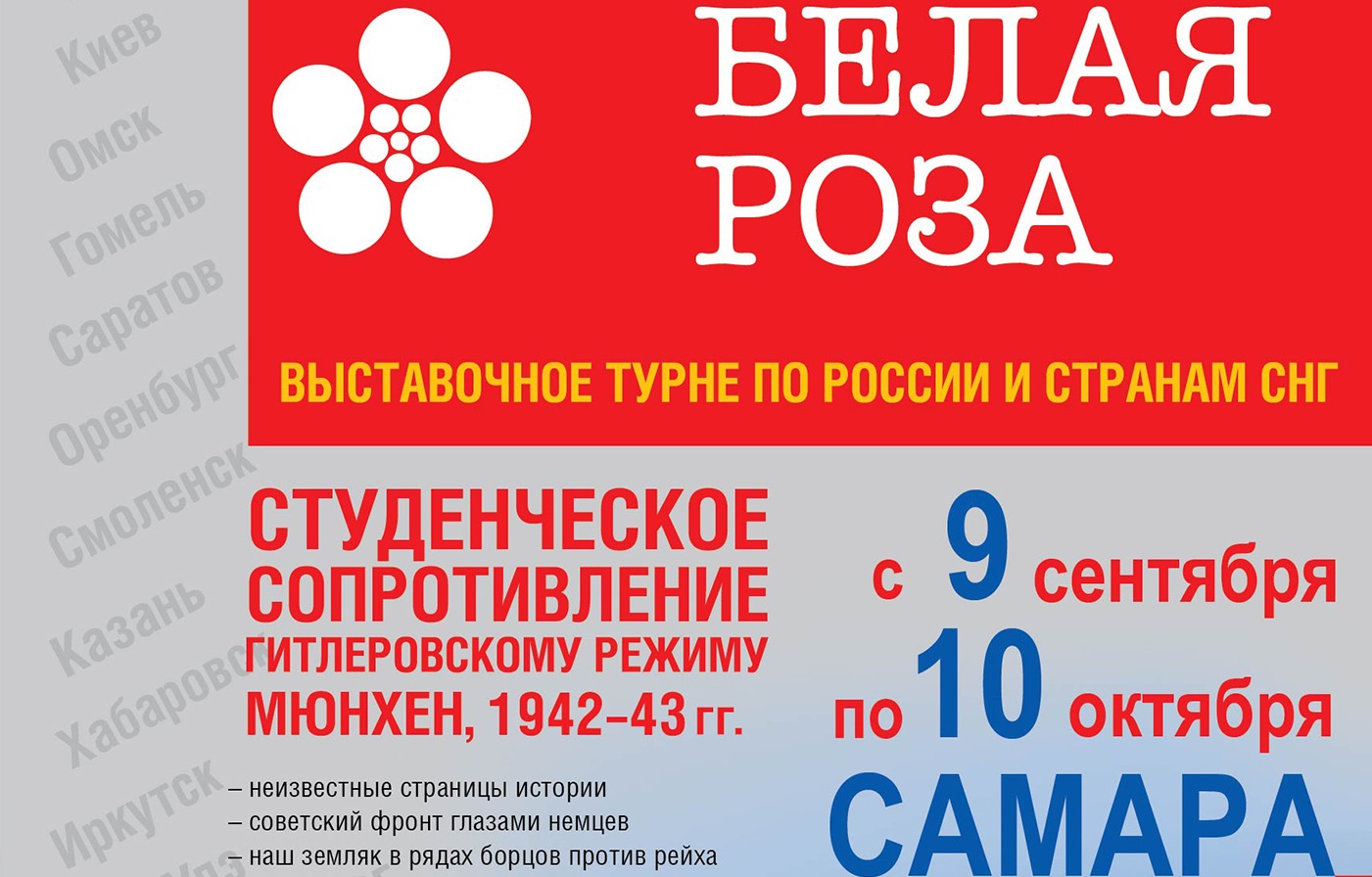 В рамках Года Германии в России 2020/2021 на этой неделе в Самаре откроется экспозиция «Белая роза» – студенческое Сопротивление гитлеровскому режиму. Мюнхен, 1942-43 гг.».
