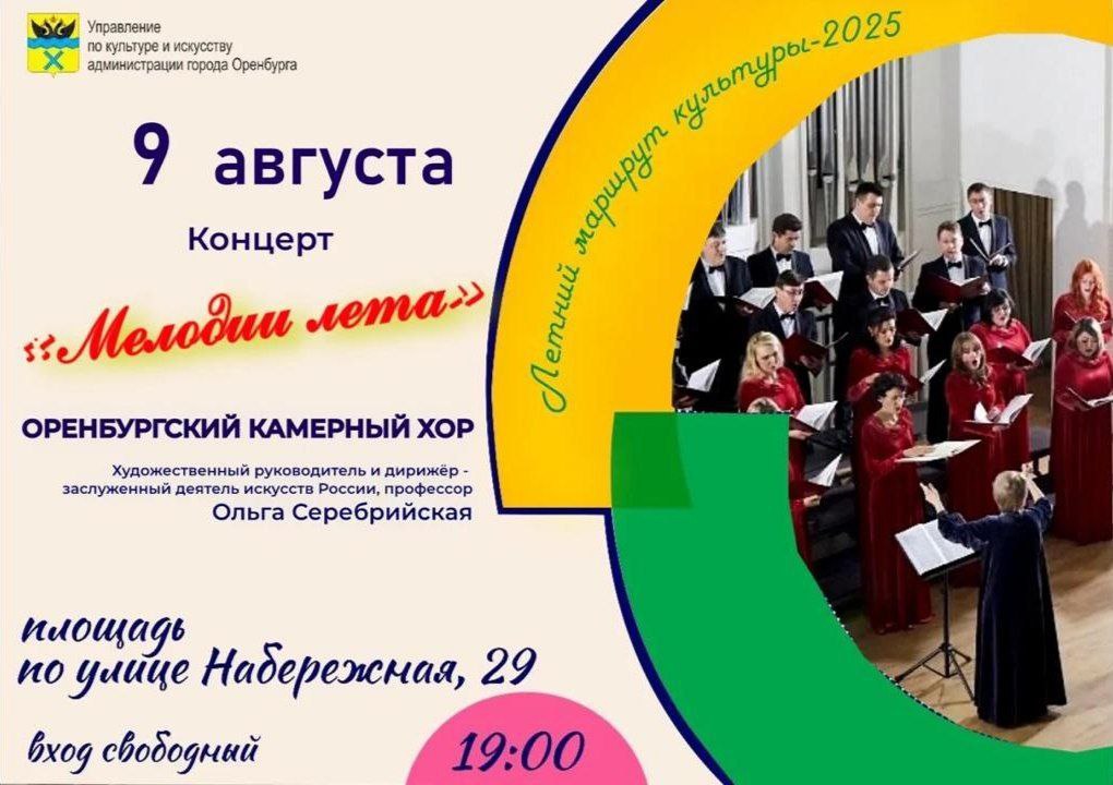 Сегодня, 9 августа, на площади перед Музеем истории Оренбурга (ул. Набережная, 29) выступит Оренбургский камерный хор под руководством заслуженного деятеля искусств РФ Ольги Серебрийской.